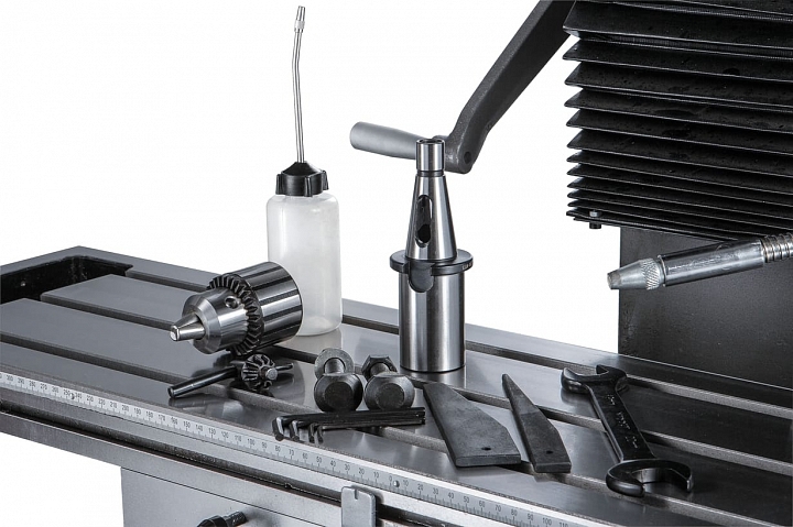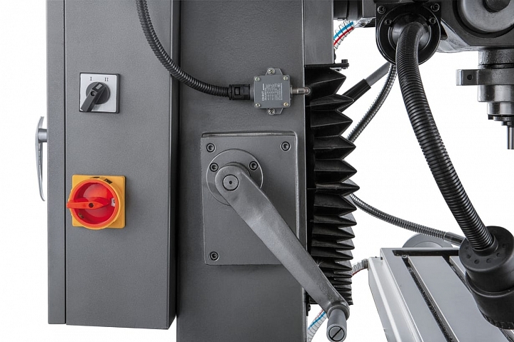 Тяжелое основание и мощная вертикальная стойка, отлиты из серого чугуна, тем самым обеспечивая оборудованию необходимую устойчивость к вибрации. Станок оснащен мощным асинхронным двигателем 1,5 кВт, и имеет коробку переключения скоростей вращения шпинделя. В зависимости от обрабатываемого материала и необходимых режимов обработки, можно выбрать любую из 12 скоростей вращения шпинделя в 2-х диапазонах от 75 до 1600 об/мин и от 150 до 3200 об/мин. Для расширения диапазона обрабатываемых деталей фрезерная голова имеет возможность наклона вправо/влево на 90 градусов.