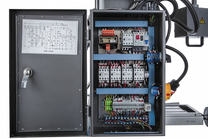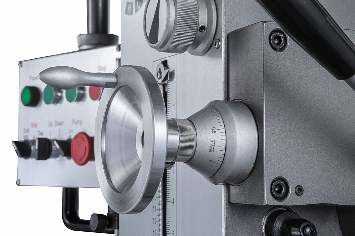 JMD-50LPFD предназначен для выполнения следующих операций: фрезерования, сверления, рассверливания, зенкования, зенкерования, развертывания и нарезания резьбы. Он оснащен шпинделем с конусом ISO30 и имеет возможность сверления отверстий до диаметра 32мм по стали и до 45мм по чугуну. Наличие реверсивного вращения электродвигателя, обеспечивает вращение шпинделя в обе стороны и позволяет осуществлять технологические операции по нарезанию резьбы.