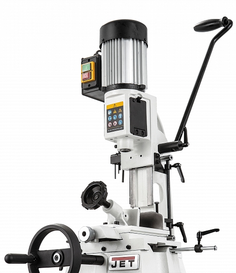 JBM-4 – долбежно пазовальный станок для подготовки деталей под прямую (90°) стыковку соединением шип-паз. Прочная и жесткая конструкция изготовлена из массивных чугунных отливок. Колонна зафиксирована под прямым углом к плоскости рабочего стола, ее положение не регулируется, это упрощает настройку и повышает точность станка.