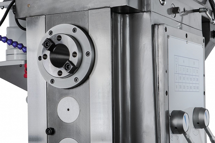 Станок оснащен двигателями мощностью 4кВт для вертикального и 5,5 кВт для горизонтального шпинделя, с большим количеством выбора скоростей, для тяжелой обработки на малых скоростях и точной обработки на высоких оборотах. За точное перемещение по осям X, Y, Z отвечает мощный сервопривод переменного тока c крутящим моментом 10 Нм.