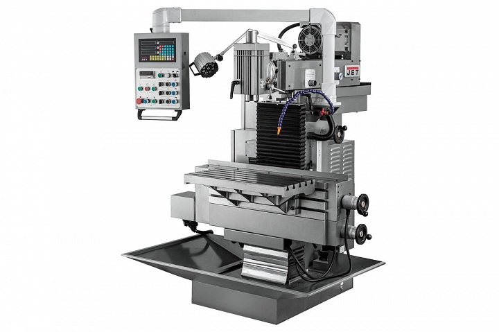 Широкоуниверсальный фрезерный станок JET JUTM-1230 Servo DRO – мощный и производительный станок в линейке оборудования компании. Он удовлетворит требованиям самого взыскательного заказчика и рассчитан на тяжелые условия эксплуатации и длительные нагрузки. Станок предназначен для всевозможных видов фрезерной обработки, сверления, растачивания и прочих операций в любом координатном направлении и может достигнуть высокой точности. Имеет горизонтальный и вертикальный рабочие столы, что существенно расширяет круг задач и операций при производстве оснастки, инструментов, приспособлений, пресс-форм и других деталей сложных форм, мелкими сериями на механообрабатывающих, инструментальных и ремонтно-механических участках.